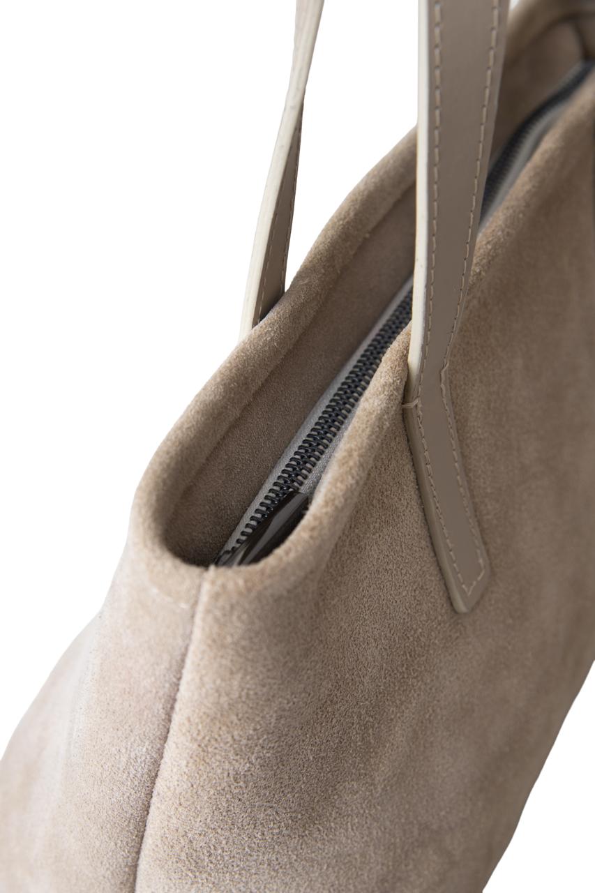 A essencial bolsa Luiza é feita de couro camurça e tem em suas generosas dimensões as características ideais para o uso diário. Suas alças são confortáveis para transporta-la e seu sistema de abertura com zíper para maior proteção.